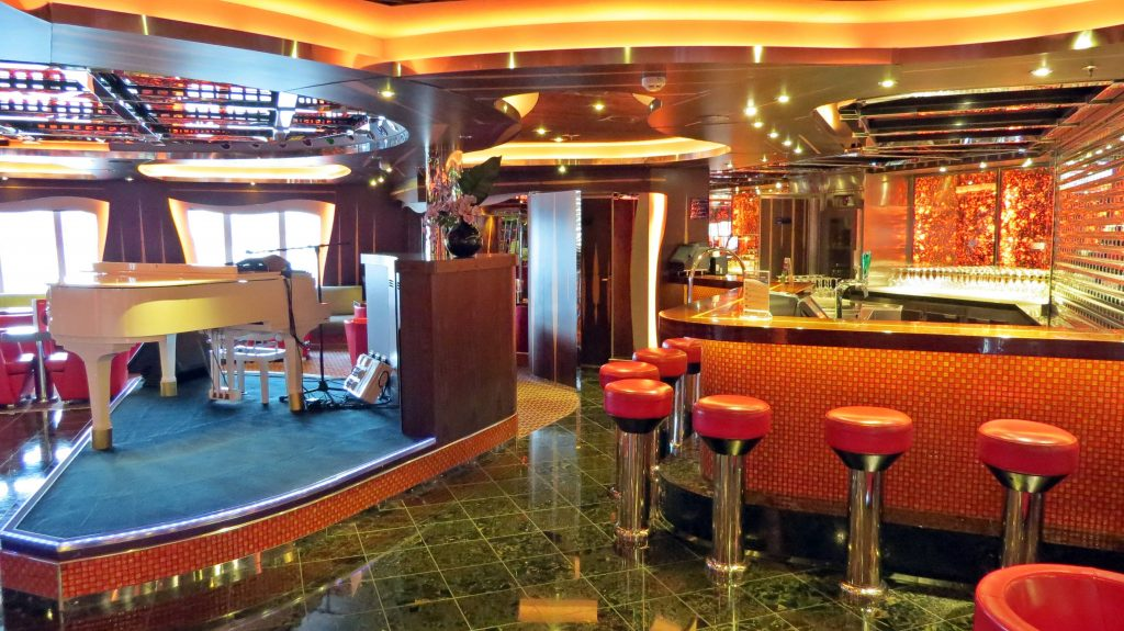Allá donde fijemos la vista veremos llamativos estampados, tejidos con grecas imposibles e innumerables estructuras ornamentales de variadas formas geométricas, con los rombos en este caso como grandes protagonistas. Es la marca inequívoca de su creador, Joe Farcus, uno de los más afamados diseñadores de la industria crucerística y cuya firma va impresa en gran parte de los buques de Carnival y en prácticamente la totalidad de la flota de Costa Cruceros.